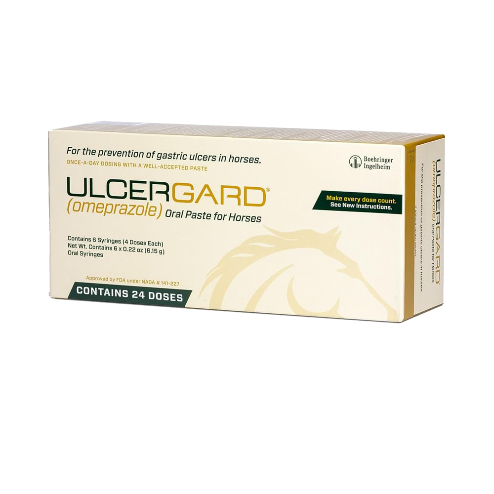 Protect your horse from the discomfort of gastric ulcers with Ulcergard Oral Paste. Each 13.68 g syringe delivers a precise dose of omeprazole, proven to prevent equine ulcers caused by stress, training, or travel. Easy to administer and safe for daily use, this 6-pack provides reliable protection for extended care. Trusted by veterinarians, Ulcergard supports your horse’s health, comfort, and performance.