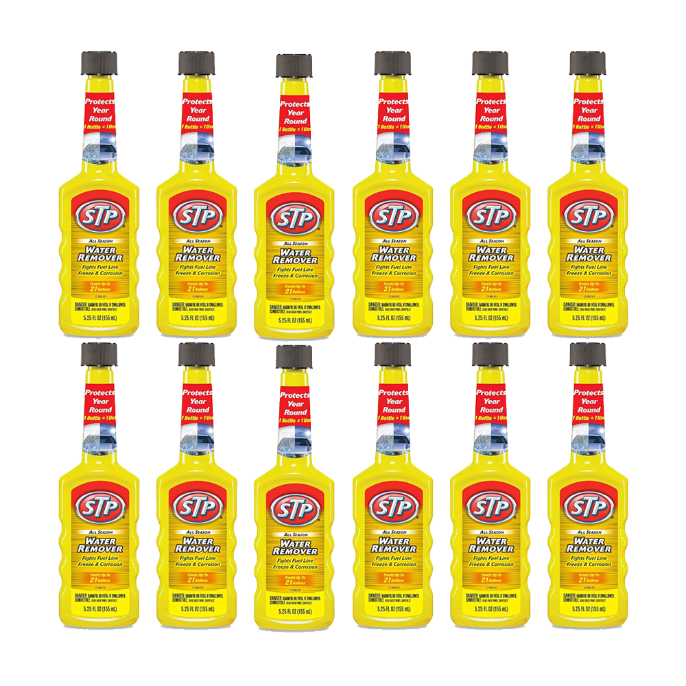 Protect your engine year-round with STP Water Remover. Specially designed for cars and trucks, it helps prevent fuel line freeze, corrosion, and rough starts by clearing water from the fuel system. Safe for all gasoline engines, this trusted formula keeps performance smooth in any season. Each case includes twelve 5.25 fl oz bottles, making it easy to treat multiple vehicles or keep on hand for regular maintenance.